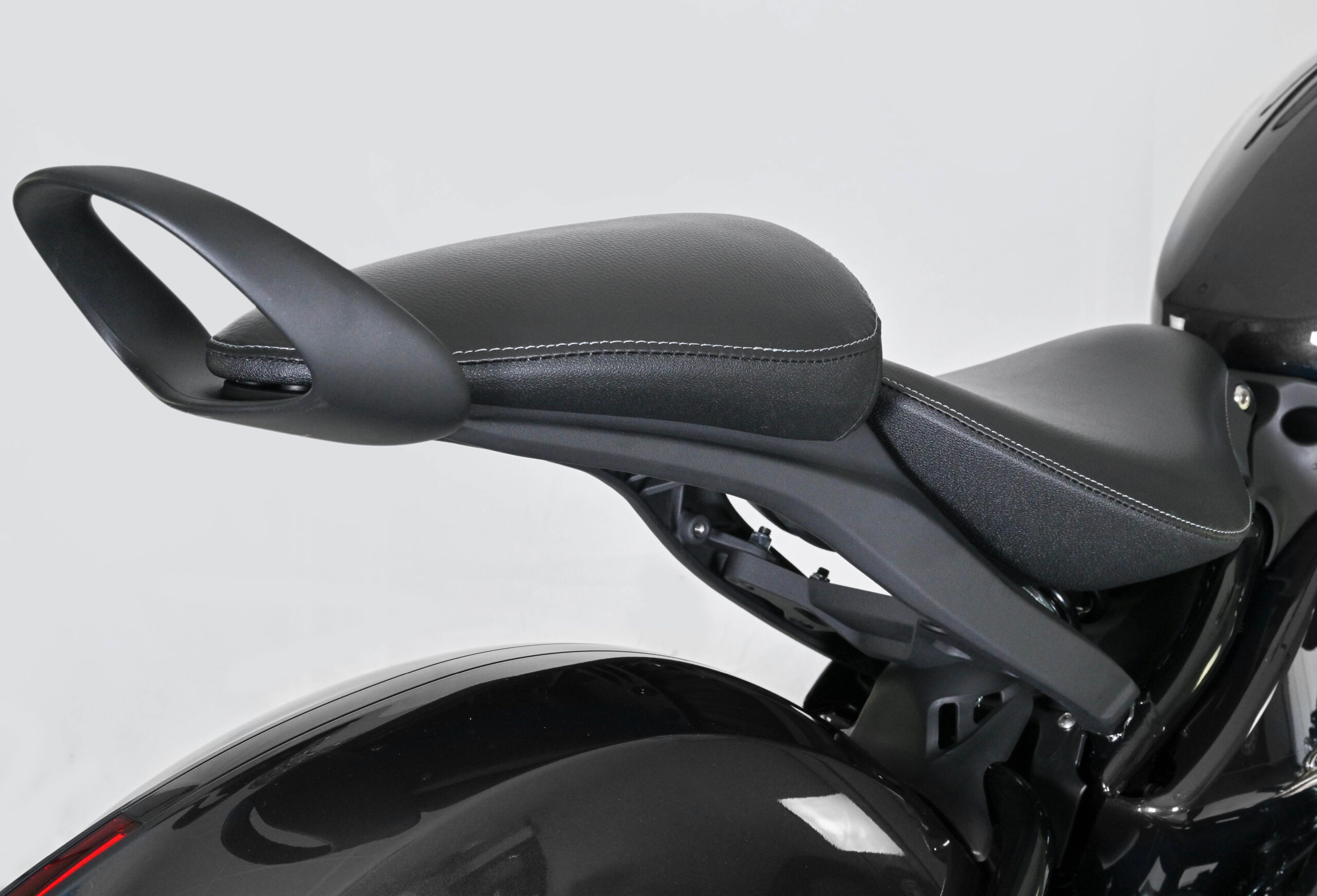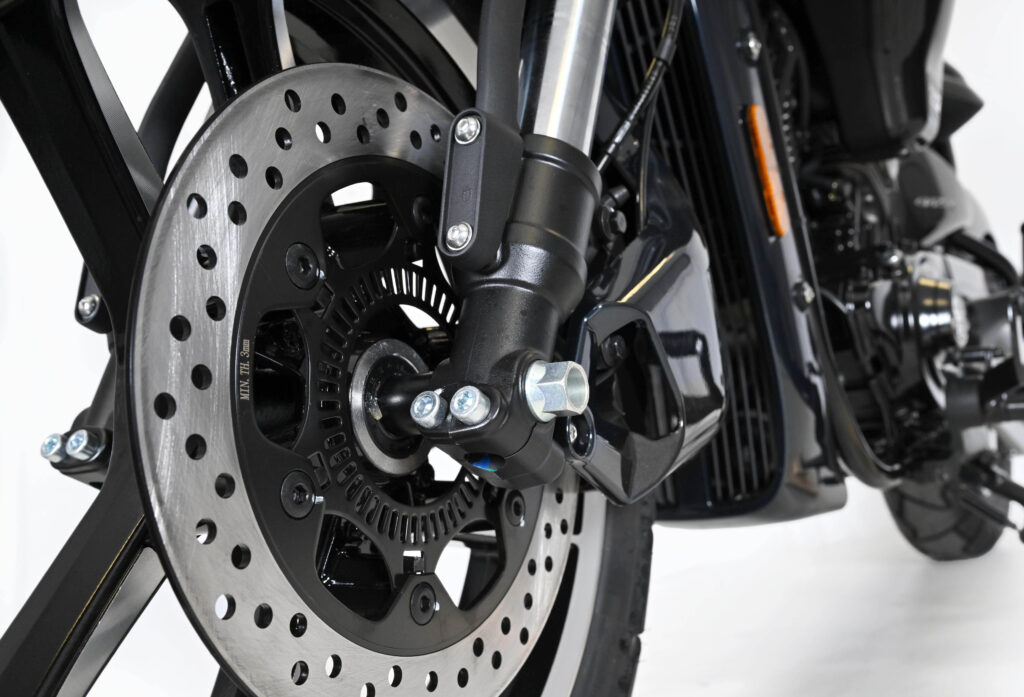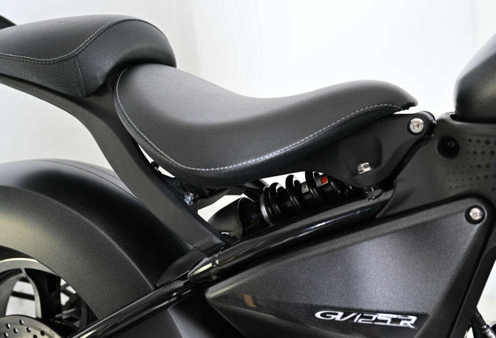 Un mono-amortisseur et une fourche inversée ont été adoptés sur la GV125R pour plus de maniabilité et de confort. Concernant la sécurité, un système de freinage ABS a été installé sur la moto, ainsi que des feux et clignotants leds pour une visibilité accrue.