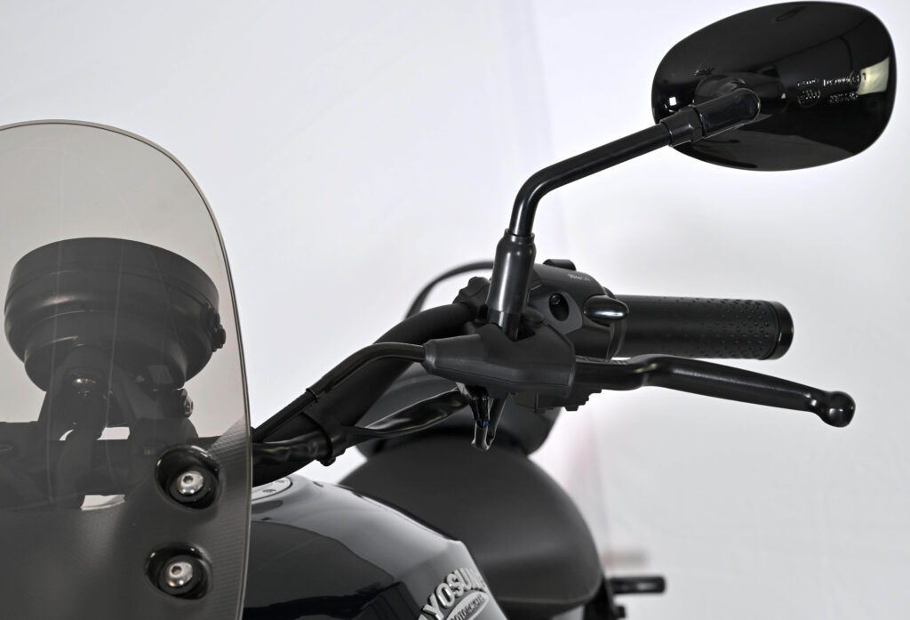La Hyosung GV125R est disponible en 3 coloris (Noir Brillant, Noir Mat et Bleu Brillant), et est affichée au prix de 4 799€.