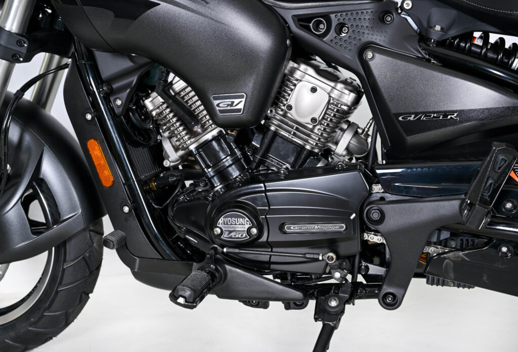 Dotée d’un moteur V-TWIN de 125cc, conçu avec un refroidissement liquide et d’une injection électronique, Hyosung a repensé l’ensemble de ce modèle.