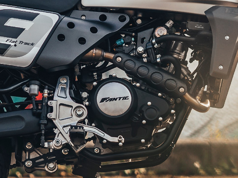 Avec ses 130 kg, elle se révèle agile, tandis que son monocylindre de 125 cm3 délivre une puissance de 15 chevaux. Elle partage la même partie cycle que sa grande sœur, la Flat Track 500, offrant ainsi un freinage de qualité, des suspensions à grand débattement (150 mm) pour une grande polyvalence sur route et en tout-terrain.