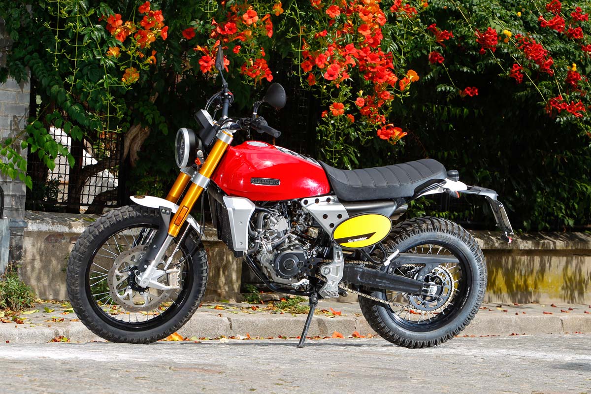 La Fantic Caballero Scrambler 125 Euro 5, avec ses 130 kg et son moteur Minarelli de 15 chevaux, se distingue comme l’une des 125 cm3 les plus performantes. Son débattement de 150 mm assure une aisance tant sur route qu’en tout-terrain.