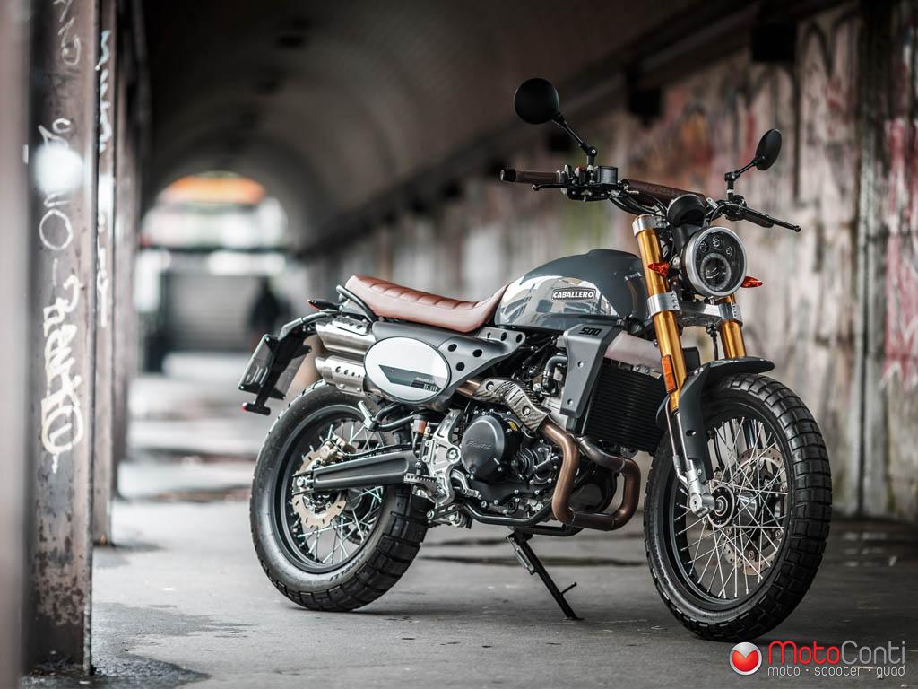 La toute nouvelle Caballero Scrambler 125 Euro 5 se présente désormais dans une version Deluxe qui séduit par son élégance incomparable. Sa selle marron et son réservoir au fini gris brillant lui confèrent un style raffiné, tandis qu’elle associe performance et esthétique avec ses 130 kg propulsés par un moteur Minarelli de 15 chevaux. Ses dimensions et son débattement de 150 mm à l’avant et à l’arrière lui confèrent une aisance tant sur route qu’en tout-terrain.