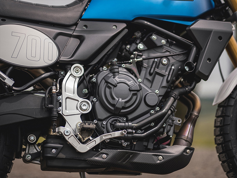 Elle est propulsée par un moteur Minarelli bicylindre de 689 cm3 à refroidissement liquide, reconnu pour ses performances et sa fiabilité. La Caballero 700 délivre une puissance de 74 chevaux et un couple de 68 Nm, pour un poids de 180 kg.