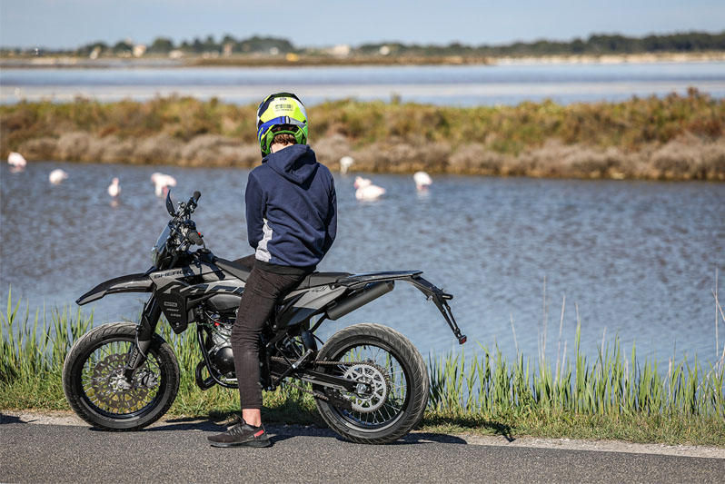 La Sherco 50 SM-R est disponible en Factory, Silver ou Blackmoon est affichée au tarif de 3499€. La moto est garantie 2 ans. Alors, qu’attendez-vous pour découvrir cette moto dans notre concession basée à Champagne-Au-Mont-d’Or (près de Lyon) ?
