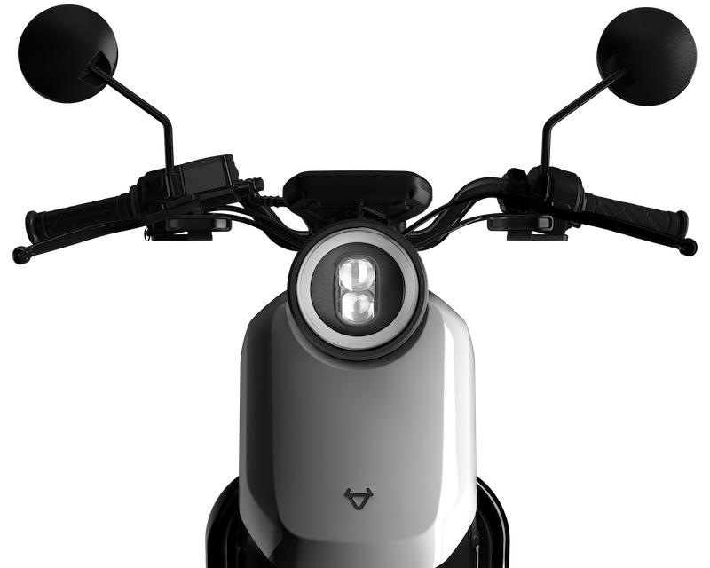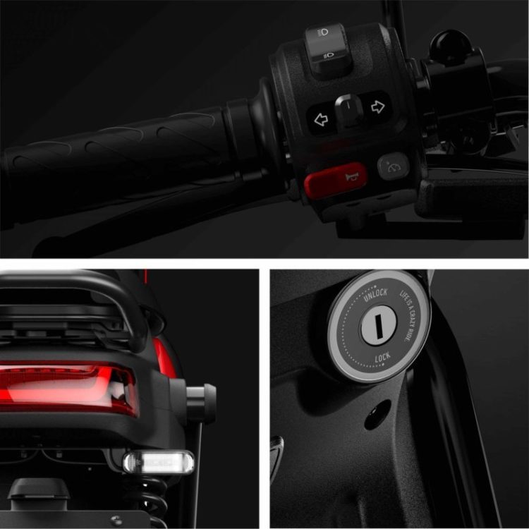Ce scooter électrique est disponible en rouge, blanc et noir, à partir de 2299 € après déduction du bonus écologique.