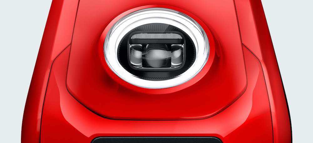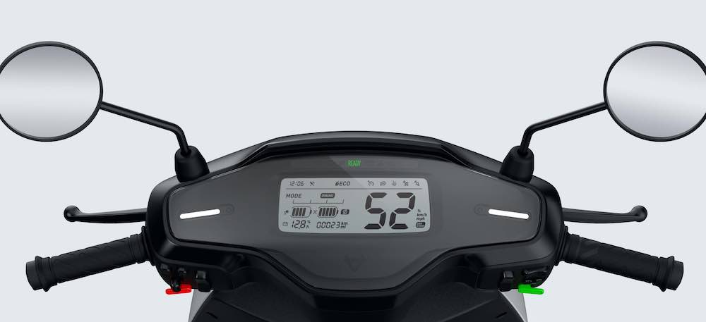 Ce scooter est disponible en blanc, rouge, gris, bleu ou noir avec bandes rouges, au tarif de 2349 € après déduction du bonus écologique.