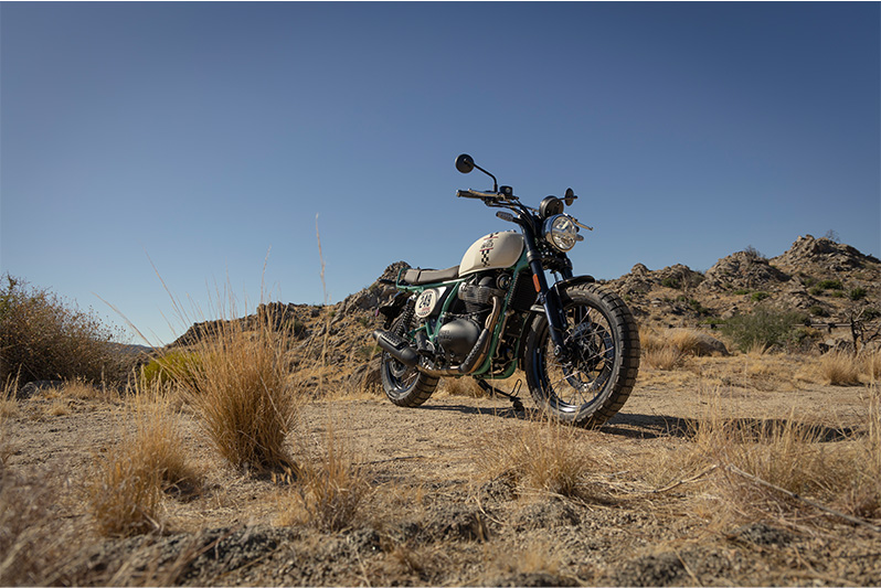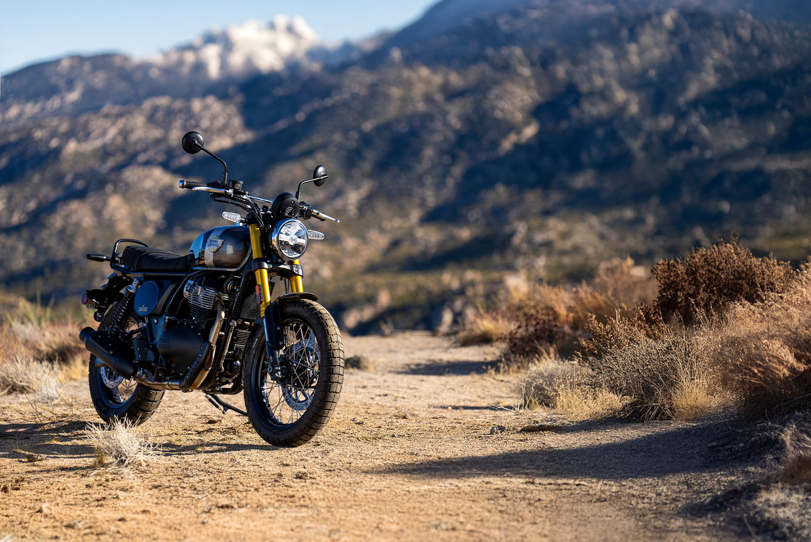 La Royal Enfield Bear 650 est un scrambler routier inspiré des années 1960, notamment des courses mythiques comme la Big Bear Run dans le désert californien. Ce modèle incarne l’esprit d’aventure et de liberté, valeurs emblématiques de Royal Enfield.