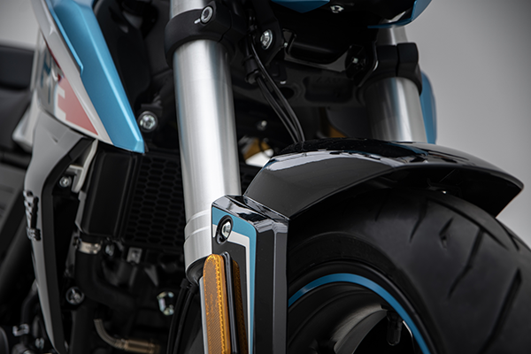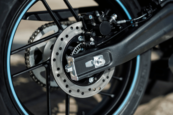 Au niveau du châssis, elle combine un cadre en treillis en acier, un bras oscillant en aluminium, une fourche inversée et un amortisseur central non réglable, avec des jantes de 17 pouces et un freinage à disque ABS à double canal, garantissant stabilité et sécurité.