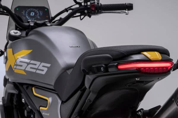Côté esthétique, la 525 ACX arbore un look revisité : échappement en hauteur, petit saute-vent, guidon rehaussé, et jantes à rayons. Avec ses disques “pétales”, ses pneus mixtes et une perte de poids de 5 kg par rapport à la 500 AC, elle combine sportivité et polyvalence.