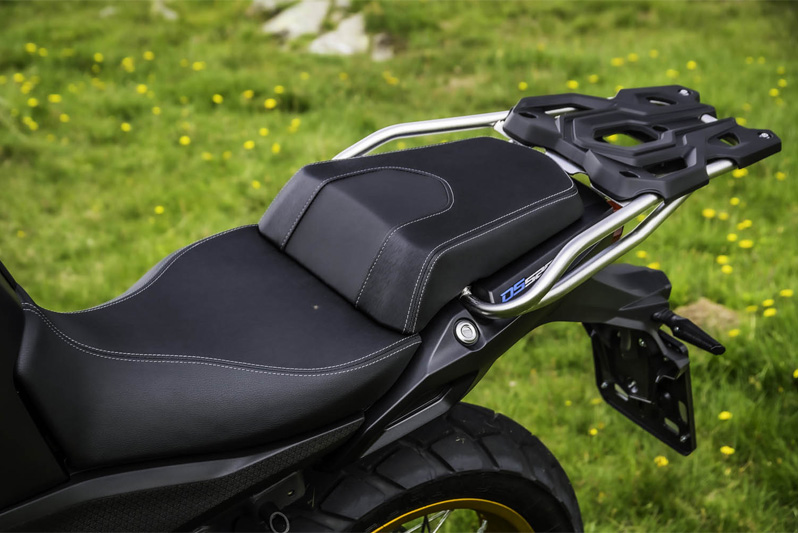 Grâce à ses composants de pointe tels que la fourche réglable Kayaba, les roues à rayons de 19 pouces à l’avant et 17 pouces à l’arrière, celles-ci associées à des pneus Metzeler tubeless, ainsi qu’au système de freinage Nissin avec ABS déconnectable, le trail 525DSX transforme chaque voyage en expérience palpitante.