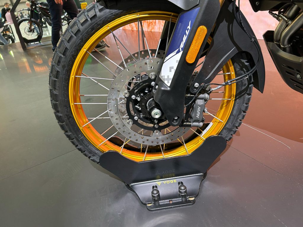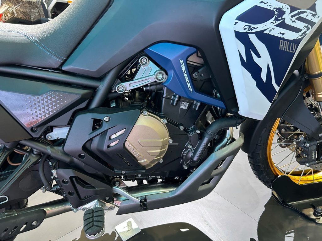 De plus, la partie cycle de ce nouveau trail Voge DS800 Rally est également pensée pour l’exploration. En effet, les suspensions KYB réglables, les roues à rayons de 21” à l’avant et de 18” à l’arrière et son freinage Nissin avec ABS déconnectable offrent adhérence, stabilité et efficacité sur tout type de terrains.