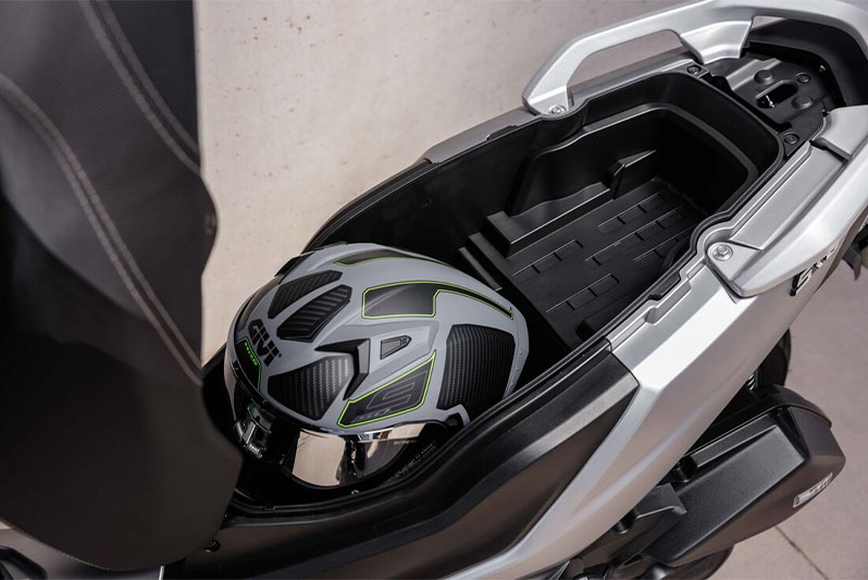 En plus de sa technologie de pointe, le scooter Voge SR1 se distingue par son confort. Il offre une selle spacieuse à une hauteur de 755 mm, un espace de rangement de 29 litres sous la selle et une grande boîte à gants sur le tablier.