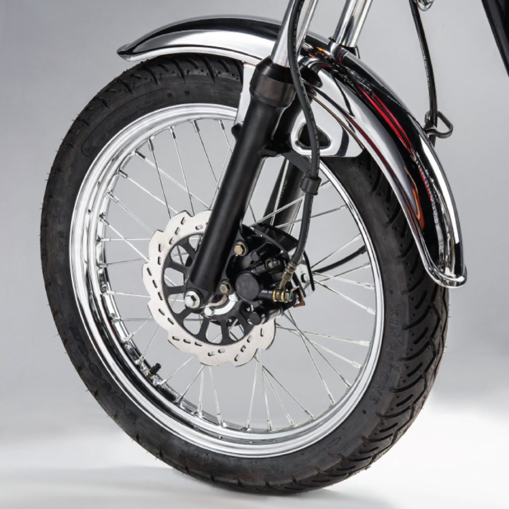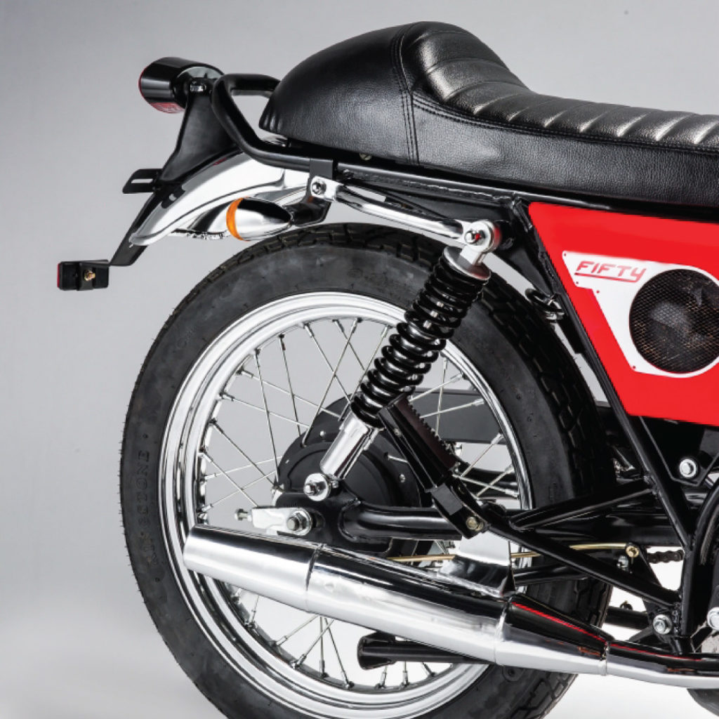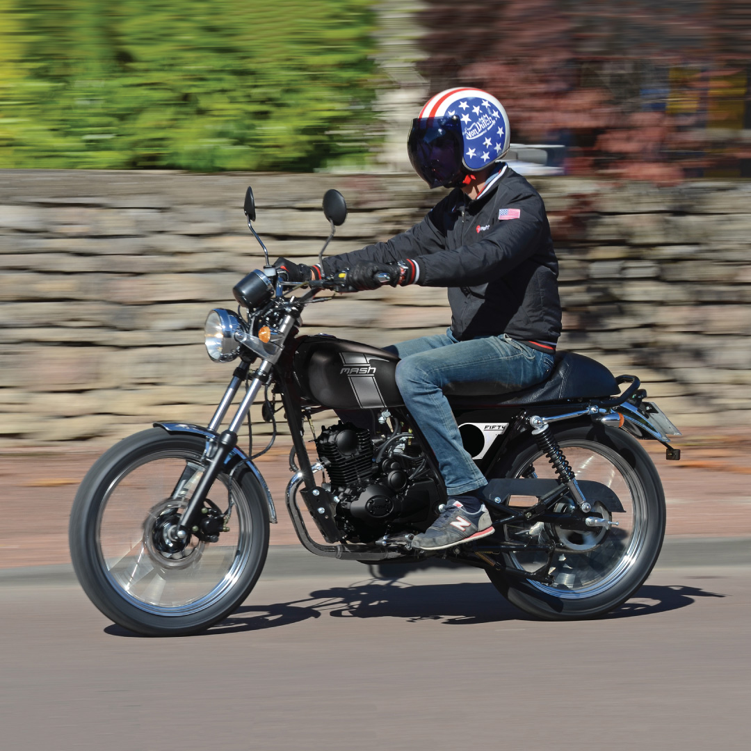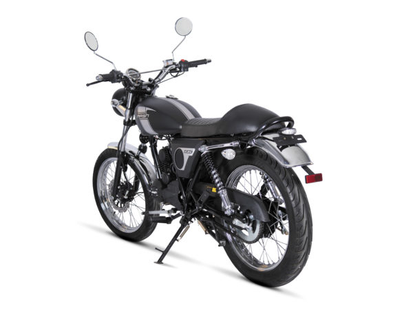 Voici la nouvelle Mash Fifty 50 en version Euro 5 ! Cette nouvelle version est à présent dotée d’un phare LED extrêmement puissant, idéal pour conduire en toute sécurité. À la fois économique (2,5 l/100km), ultra légère (85 kg) et fun à conduire, cette moto plaira aux adeptes du look vintage. Disponible avec le BSR, cette 50 cm3 sera l’allié parfait des jeunes conducteurs. Son monocylindre de 50 cm3 développant 2,1 kW à 6800 tours par minutes permet de pousser la moto à 45 km/h. Sa boite à 4 rapports permet également d’avoir plus d’allonge et plus de confort lors de l’accélération. Enfin, son réservoir de 12 litres lui permet de parcourir plus de 400 km sans avoir à s’arrêter à la pompe à essence.