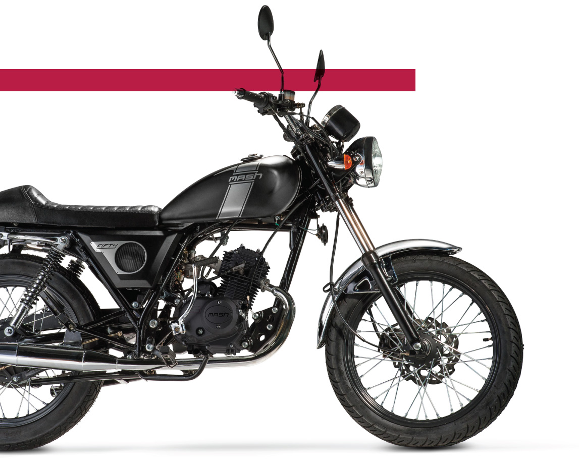 La Mash Fifty 50 cm3 est disponible en noir au tarif de 2599€. Cette moto possède une garantie pièce et main d’oeuvre de 3 ans, kilomètrage illimité. N’attendez plus pour découvrir la Fifty 50 dans notre concession basée à Champagne Au Mont d’Or !