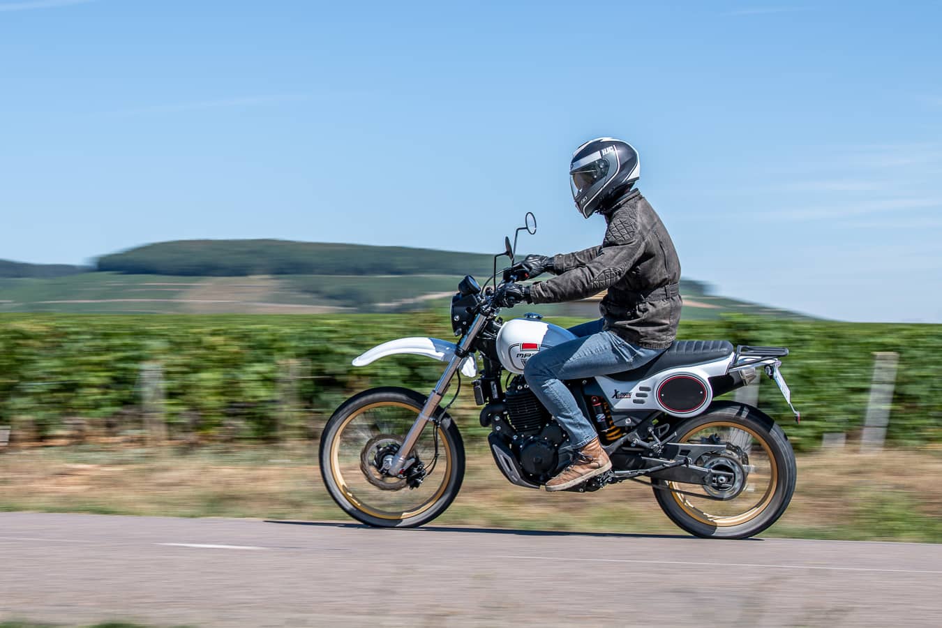 Côté moteur, la Mash X-Ride 21 pouces est équipé d’un gros monocylindre délivrant 40 chevaux et 42 Nm de couple. Idéal pour les jeunes permis, de par son comportement moteur, elle permet amplement de s’amuser dans les chemins ou sur route !