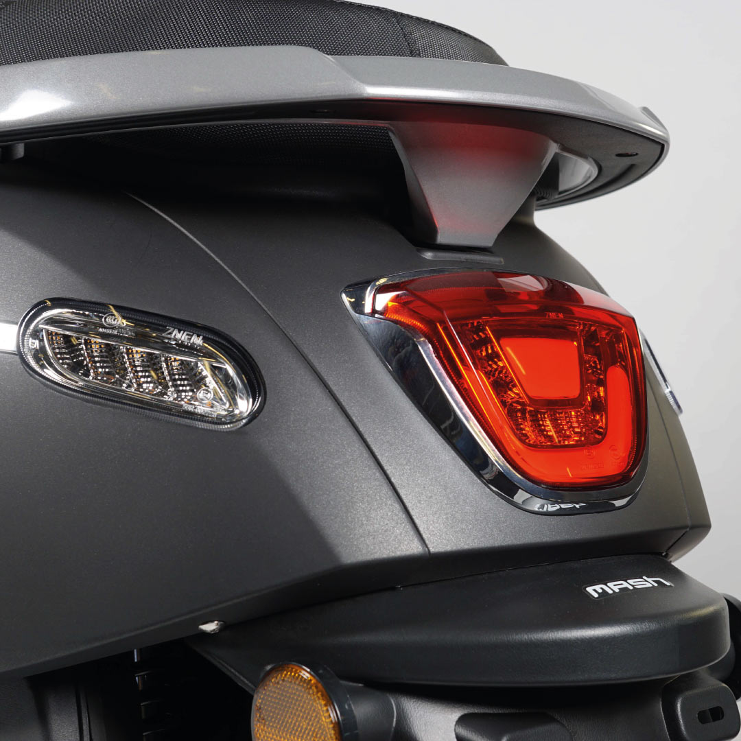 Entre look vintage et look moderne, le scooter Mash City 125 est l’incarnation même du style néo-rétro. Son moteur de 125 cm3 développe 7,4 chevaux à 7500 tours par minutes et propulse ses 112 kg à près de 100 km/h. Son réservoir de 6,2 litres quant à lui, permet au City 125 de parcourir des centaines de kilomètres. Le Mash City 125 est donc un scooter urbain, également à l’aise sur les routes secondaires. Ce scooter 125 est aussi sécurisant grâce à son freinage combiné à disque à l’avant comme à l’arrière. Enfin, ses petites roues de 12 pouces lui permettent d’être extrêmement agile et de se faufiler aisément entre les voitures.