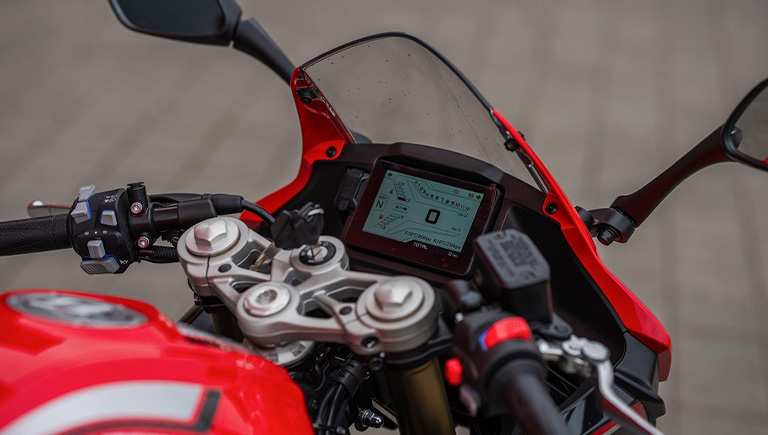 En ce qui concerne l’équipement de la QJ Motor SRK 125 R, elle est entièrement équipée de feux à LED, d’un tableau de bord offrant une multitude d’informations telles que la pression des pneus avant et arrière, avec des commodes rétro-éclairés.