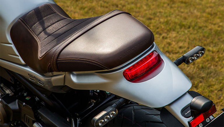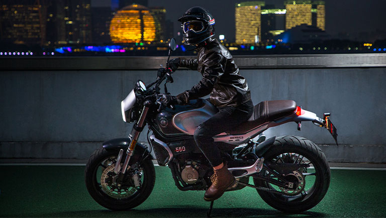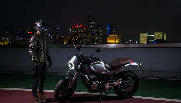 LA QJ Motor SRV 550, une moto au style néo rétro alimentée par un moteur de 554 cm3 développant 47,5 chevaux et 51 Nm de couple. De par son look, sa partie cycle affûtée et son moteur joueur, la SRV 550 saura se faufiler dans la jungle urbaine, mais aussi affronter les virages les plus serrés. De plus, ses différents équipements, son freinage ABS ainsi que ses freins à double disque de 320 mm à l’avant et simple disque de 260 mm à l’arrière, donnent un véritable sentiment de sécurité. Enfin, les roues en 17 pouces à l’avant et à l’arrière rendent la SRV 550 très confortable sur sol sec et humide sans compromis sur l’agilité du véhicule.