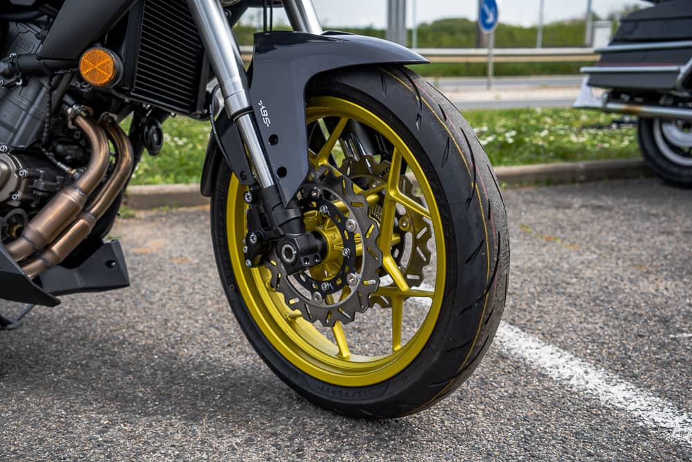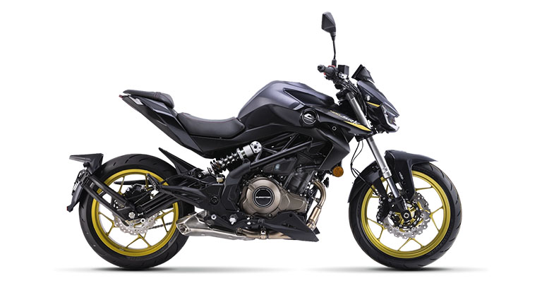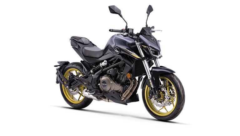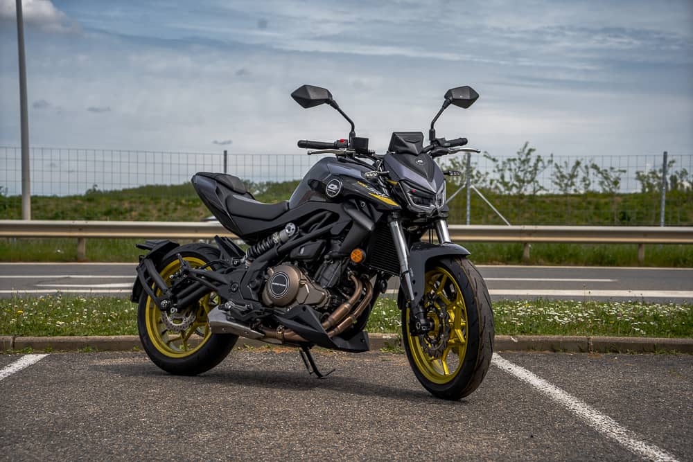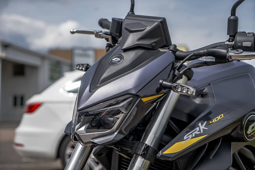 Prendre le guidon de la QJ Motor SRK 400, c’est le coup de foudre assuré dès le premier virage ! Son bi-cylindre développant près de 42 chevaux et 37 Nm de couple, il répond parfaitement aux besoins des titulaires du permis A2. C’est une moto légère, maniable et précise qui saura ravir les motards expérimentés tout comme les débutants. De plus, elle est équipée d’un freinage ABS ainsi que ses freins à double disque de 260 mm à l’avant et simple disque de 240 mm à l’arrière stoppent la machine en quelques mètres, elle se montre très sécurisante. Enfin, les roues de 17 pouces à l’avant et à l’arrière lui confèrent une agilité hors du commun. La SRK400 est disponible en noir avec les finitions couleur or au tarif de 4 999 €. La moto est garantie 3 ans pièces et main d’oeuvre.