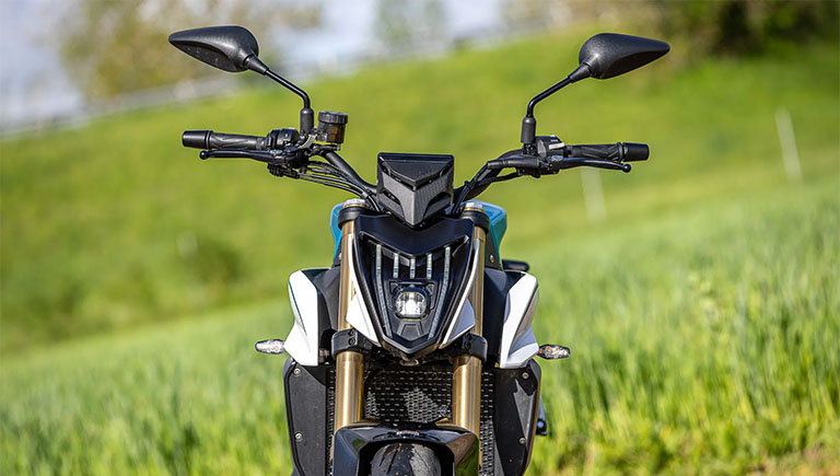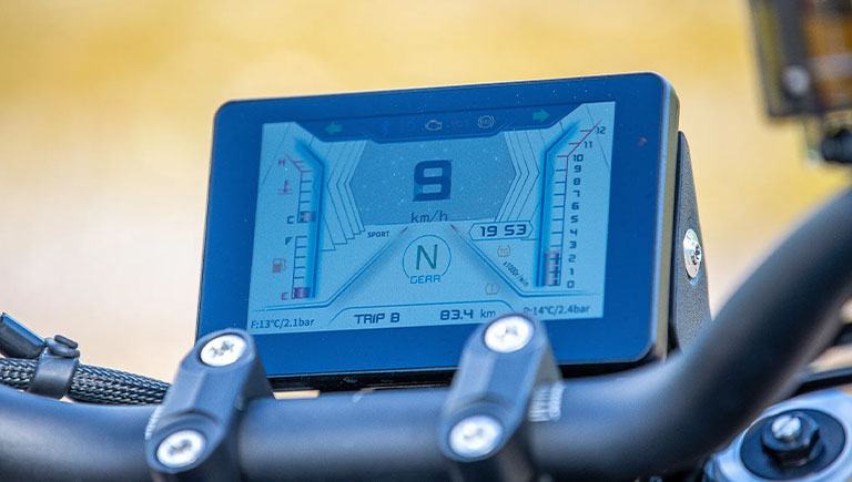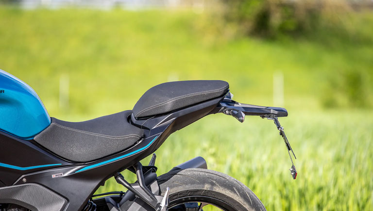 En effet, le SRK 550 opte pour une ligne compacte, avec son empattement de 1420mm, son poids total de 176kg et sa hauteur de selle basse de 790mm. Ainsi, il est idéal pour les motards confirmés et les motard cherchant une moto A2.