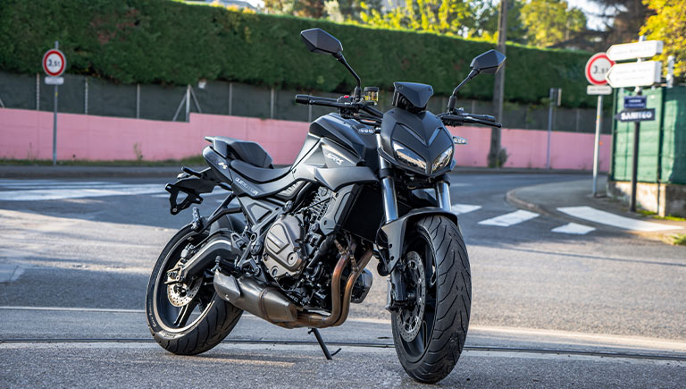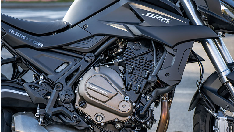 Se retrouver au guidon de la QJ Motor SRK 700, c’est faire le choix de la sportivité ! Son bi-cylindre développant 74 chevaux et 66 Nm de couple, il saura ravir les plus avides d’adrénaline. De par sa partie cycle équilibrée, la QJ Motor SRK 700 est précise, maniable et légère, ce qui en fait une moto idéale pour les motards expérimentés et les débutants pouvant la brider en A2. De plus, équipée d’un freinage ABS avec double disque de 320 mm à l’avant et simple disque 240 mm à l’arrière, ce deux-roues se montre très sécurisant. Ses roues de 17 pouces à l’avant et l’arrière couplées aux pneus Pirelli Angel lui confèrent une souplesse hors pair. Enfin, son écran TFT, permet de garder un oeil sur toutes les informations nécessaire au pilotage.