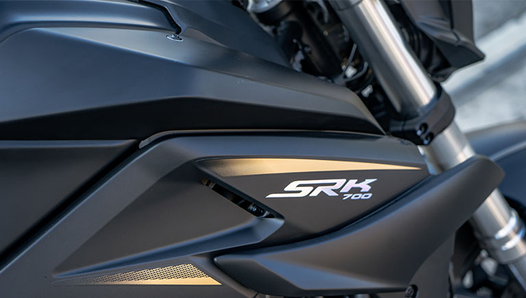 La SRK700 est disponible en noir au tarif de 6 490 €. La moto est garantie 3 ans pièces et main d’oeuvre.